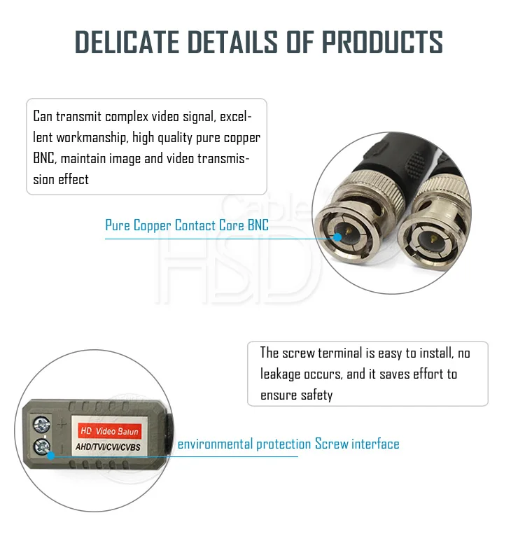 Using twisted pair instead of 75 ohm coaxial cable as video signal transmission. Improve image quality and clarity. Anti interference. Increase cable utilization and reduce engineering costs. Because of the long transmission distance and the processing technology used in video communication, the magnitude of video signal and the attenuation of different frequencies are amplified and compensated, and the brightness and color of the original image are maintained. Good transmission of medium and long distance video signal is realized.