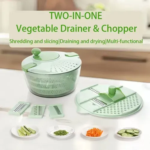 Introducing the 5 in 1 Salad Blender, your ultimate kitchen tool for all your food preparation needs. This multifunctional salad blender is designed to make your salads, fruits, and vegetables easier to prepare and more delicious.Key Features:·5 in 1 Salad Blender: This versatile blender includes a chopping board, a salad drier, a water-washing machine, a pasta drainer, and a fruit slicer, all designed to meet your cooking and serving needs.·Chopping Board Included: The salad blender comes with a chopping board, allowing you to chop your vegetables right after washing.·Versatile Use: In addition to salads, this blender can be used as a vegetable washer, fruit washer, or pasta drainer, making it a must-have for any kitchen.·Multiple Blades: Equipped with 3 different blades, you can easily slice, shred, and dice for all kinds of dish preparation needs.·Safe and Hygienic: Made of food-grade materials, this blender ensures a safe and healthy diet for you and your family.·Durable Construction: The blades are made of 304 stainless steel for sharpness and durability.·Stable Base: The base ensures stability, providing a solid foundation for your food preparation tasks.·Secure Lid: The lid features a double lock for safe handling and storage, preventing spills and making it easy to use.·Efficient Drying: The salad drying rotator greatly reduces food preparation time compared to traditional hand-cutting methods, making kitchen work more efficient and the cooking process more enjoyable.·Easy to Clean: The salad drier dries lettuce and vegetables effortlessly. The base ensures stability, while the crank-style handle prevents slipping. The lid has a double lock for safe handling and storage. Rinse with water and spin in both directions for quick drying. Removable design allows for easy cleaning, simply add warm soapy water, empty the bowl, and dry with a kitchen towel.Benefits:·Efficient Food Preparation: The salad drying rotator reduces food preparation time, making your kitchen work more efficient and the cooking process more enjoyable.·Safe and Hygienic: The food-grade materials used in the blender ensure a safe and healthy diet for you and your family.·Durable and Reliable: The 304 stainless steel blades provide sharpness and durability, ensuring long-lasting use.·Stable and Secure: The base ensures stability, while the crank-style handle prevents slipping.·Easy to Clean: The salad drier dries lettuce and vegetables effortlessly. The base ensures stability, while the crank-style handle prevents slipping. The lid has a double lock for safe handling and storage.Usage Tips:·Rinse with water and rotate in both directions for quick drying.·Removable design allows for easy cleaning, simply add warm soapy water, empty the bowl, and dry with a kitchen towel.Enhance your kitchen experience with the 5 in 1 Salad Blender, your go-to solution for all your food preparation needs.Salad Spinner, Vegetables Wash Bowl, Fruits & Herb Lettuce Dryer with 3 Blade Slicer Egg Yolk Strainer Shredder for Efficient Salad Preparation and Food Washing, 4.25QtSalad Spinner, Vegetables Wash Bowl, Fruits & Herb Lettuce Dryer with 3 Blade Slicer Egg Yolk Strainer Shredder for Efficient Salad Preparation and Food Washing, 4.25QtSalad Spinner, Vegetables Wash Bowl, Fruits & Herb Lettuce Dryer with 3 Blade Slicer Egg Yolk Strainer Shredder for Efficient Salad Preparation and Food Washing, 4.25QtSalad Spinner, Vegetables Wash Bowl, Fruits & Herb Lettuce Dryer with 3 Blade Slicer Egg Yolk Strainer Shredder for Efficient Salad Preparation and Food Washing, 4.25QtSalad Spinner, Vegetables Wash Bowl, Fruits & Herb Lettuce Dryer with 3 Blade Slicer Egg Yolk Strainer Shredder for Efficient Salad Preparation and Food Washing, 4.25Qt