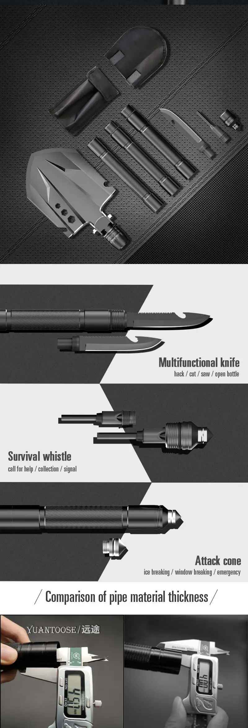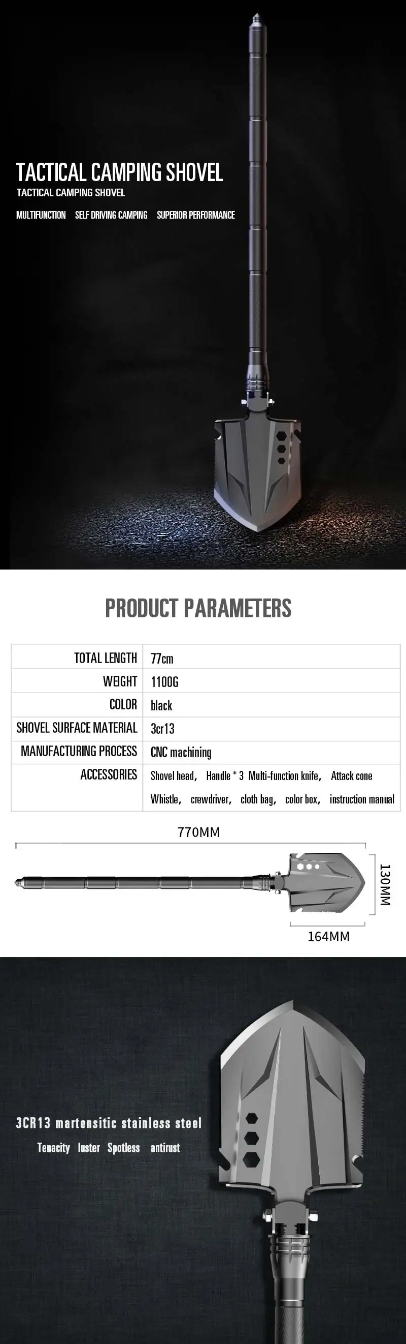 Outdoor Multi-Function Camping Survival Vehicle Shovel Blackened Aluminum Alloy Foldable Design